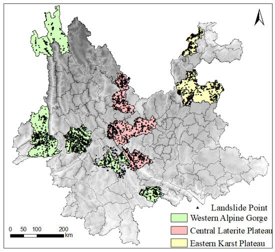 Selected regions and distribution of landslide disaster points.