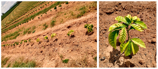 - Silva Vallone, H.; Guimarães, R.J.; Nazareno, A.; Mendes, G.; Alberto, C.; Souza, S.; Dias, F.P.; Carvalho, A.M. Recipientes E Substratos Na Produção de Mudas E No Desenvolvimento Inicial de Cafeeiros Após o Plantio 1 Recipients and Substrates in the Production of Seedlings and Initial Development of Coffee Trees after Planting; Editora da Universidade Federal de Lavras: Lavras, Brazil, 2009; Volume 33. [Google Scholar]