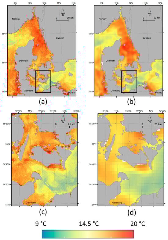 - Høyer, J.L.; Karagali, I. Sea surface temperature climate data record for the North Sea and Baltic Sea. J. Clim. 2016, 29, 2529–2541. [Google Scholar] [CrossRef]