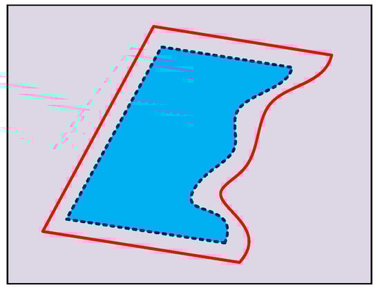 - The distance between each point in S and is calculated. If is less than , the point is considered to be inside the circle; otherwise, it is deemed to be outside the circle. If there are and such that there are no other points inside the circle, then and are defined as edge points, and is defined as a boundary line. The edge points are obtained until all point pairs in S have been processed.