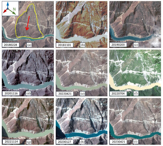 - Xiong, Z.Q.; Feng, G.C.; Feng, Z.X.; Miao, L.; Wang, Y.D.; Yang, D.J.; Luo, S.R. Pre- and post-failure spatial-temporal deformation pattern of the Baige landslide retrieved from multiple radar and optical satellite images. Eng. Geol. 2020, 279, 105880. [Google Scholar] [CrossRef]