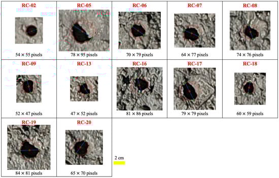 This approach allowed for a standardized, geometrically accurate method of determining the diameters of the burrow openings, facilitating consistent comparisons across the dataset.