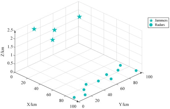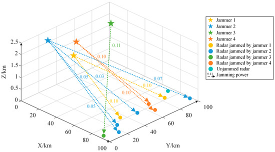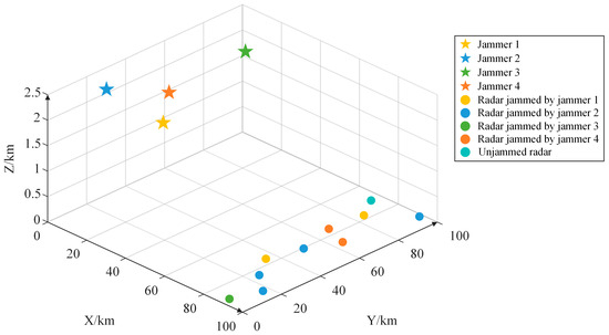 The spatial relationship between the jammers and radars is illustrated in Figure 6.