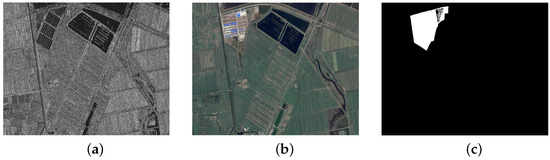 Shuguang data set: (a) SAR image; (b) optical image; (c) ground-truth map.