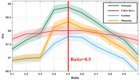 In self-paced learning, selecting the appropriate step-speed parameter () can be challenging. As mentioned in [60], SPL computation can be streamlined by seeking a solution based on the number of training samples involved. We organize the losses of all training samples in ascending order to acquire , then designate the th loss value of as , represented as . After the self-paced learning phase, new samples are introduced, prompting a recalculation of . In subsequent experiments, we delve deeper into the influence of and on the model’s efficacy.