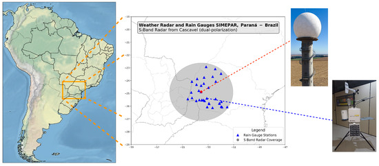 The quantitative precipitation estimation (QPE) method is a foundational pillar in hydro-meteorological sciences, with far-reaching implications for energy generation, agricultural planning, and environmental conservation. This study’s motivation arose from Brazil’s hydroelectric heart, Western Paraná, underpinned by the Itaipu Binational Dam, a global leader in hydroelectric energy output [1]. The complexities of weather forecasting in this region not only have academic and economic significance but also are vital for the strategic operation of hydroelectric reservoirs and for the protection of communities against the unpredictable forces of nature [2,3].
