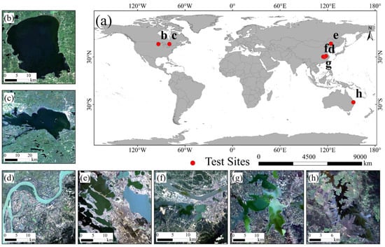 - Luo, X.; Tong, X.; Hu, Z. An applicable and automatic method for earth surface water mapping based on multispectral images. Int. J. Appl. Earth Obs. Geoinf. 2021, 103, 102472. [Google Scholar] [CrossRef]