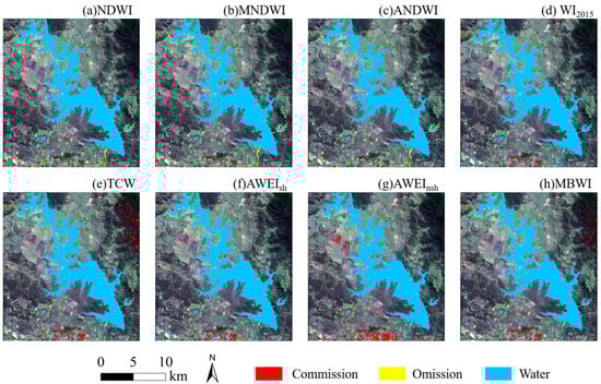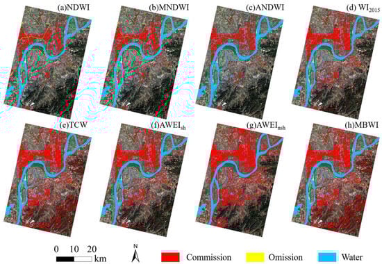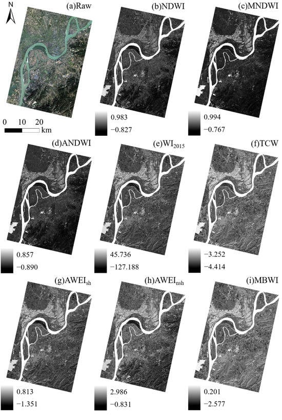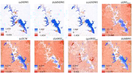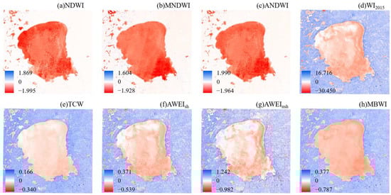 | NDWI | MNDWI | ANDWI | WI2015 | TCW | AWEIsh | AWEInsh | MBWI | NDWI | MNDWI | ANDWI | WI2015 | TCW | AWEIsh | AWEInsh | MBWI | |||