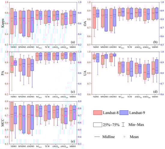 APA StyleChen, J., Wang, Y., Wang, J., Zhang, Y., Xu, Y., Yang, O., Zhang, R., Wang, J., Wang, Z., Lu, F., & Hu, Z. (2024). The Performance of Landsat-8 and Landsat-9 Data for Water Body Extraction Based on Various Water Indices: A Comparative Analysis. Remote Sensing, 16(11), 1984. https://doi.org/10.3390/rs16111984
