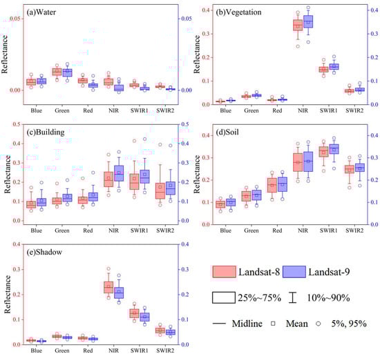 5.2. Spectral Response and Reflectance of Landsat-8 and Landsat-9 Data