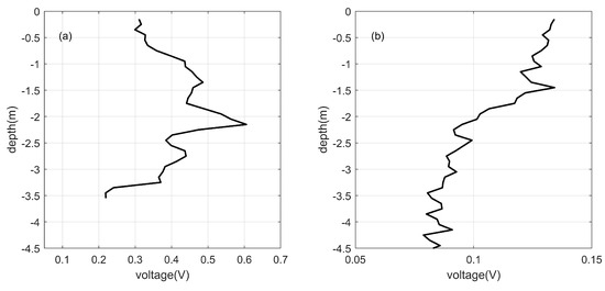 The observation platforms were primarily used to monitor the horizontal dispersion of the dye. To capture vertical profiles of dye concentration, a fluorometer attached to a Self-Contained Autonomous Micro-Profiler (SCAMP, Precision Measurement Engineering, CA, USA) was utilized. This sensor records fluorescence emitted by the dye, converting it into voltage readings via a photodiode. The fluorometer operated at a sampling rate of 100 Hz and was set to measure in an upward mode from a depth of 5 m to the surface. For a comprehensive vertical profile, voltage data were binned at 10 cm intervals throughout the profile. In total, nine castings were conducted, resulting in two distinct vertical distribution profiles. Because the sensor exhibits linear sensitivity to fluorescence, the collected voltage data were analyzed to evaluate variances in the vertical distribution of the dye, estimating vertical eddy diffusivity near the surface.