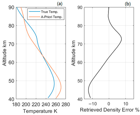 (a) The forward and a priori temperature; (b) the corresponding density error.