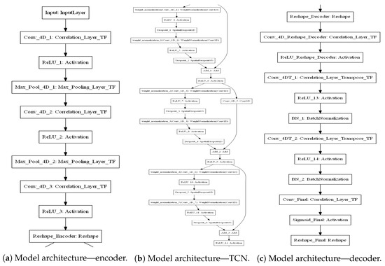 As previously discussed in Section 1, ETCNs [9] stand out as the leading models for the current task. These models employ a three-part architecture featuring an encoder network, a TCN, and a decoder network. To optimize the processing of the data’s temporal aspect, the authors implemented the Time-Distributed wrapper around 2D-CNNs within the encoder and decoder segments of the model. The encoder segment is structured with convolutional and max pooling layer blocks, whereas the decoder reverses this process by utilizing 2D transpose convolutional and batch normalization layers. The TCN component of the architecture is characterized by residual blocks that include 1D dilated causal convolutional layers, dropout layers, and ReLU activation layers. This particular configuration of causal convolution ensures that the model’s prediction at any specific time is solely based on past inputs.