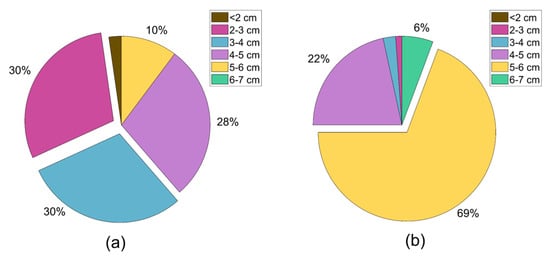 Figure 13 shows that the NGZTD model exhibited a negative bias at most stations, whereas the GPT3 model exhibited a positive bias. The RMSE of the GPT3 model exceeded 5 cm in most regions. In particular, in regions with high altitudes and undulating terrain, the NGZTD model is more advantageous. In addition, Figure 14 shows the accuracy percentage for the NGZTD and GPT3 models. The NGZTD model had the largest proportion of RMSE in the interval of 2–3 cm, accounting for 30% of the RMSE, whereas the largest proportion of RMSE for the GPT3 model was in the interval of 5–6 cm, accounting for 69% of the RMSE. In the interval in which the RMSE was <2 cm, the NGZTD model accounted for 2%, whereas the GPT3 model accounted for 0%. According to the above results of the accuracy validation, the NGZTD model exhibited stable and high accuracy in terms of capturing seasonal and diurnal variations, adaptability to terrain, and adaptability to different elevations. The new ZTD model can directly provide reliable and high-precision ZTD for users in China.