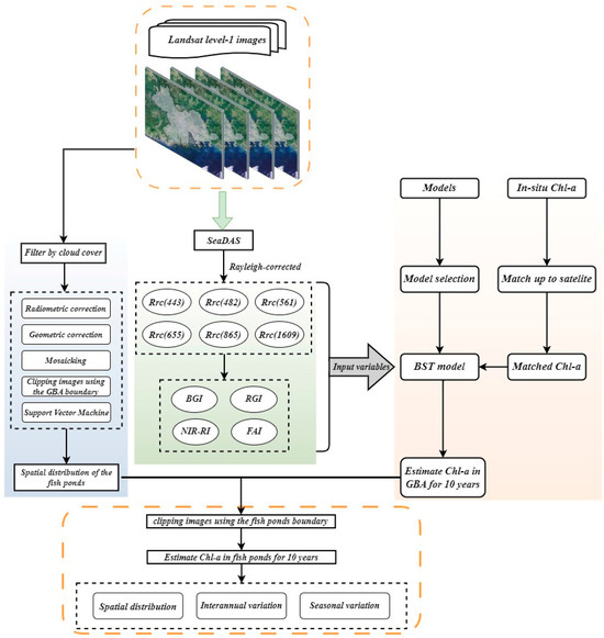 Aquaculture plays a crucial role in the world’s food security. This study, based on the BST model, analyzed the dynamics of Chl-a concentration in fish ponds in the GBA over the past decade (2013–2022). The results indicated that the model has good performance in Chl-a concentration retrieval. The major conclusions derived from this study are as follows: