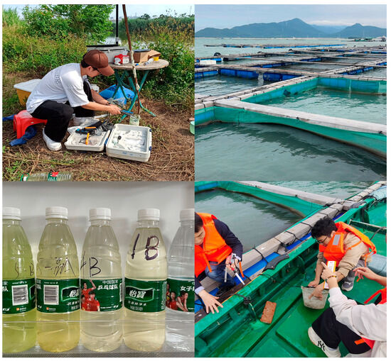 On-site photos of water sampling conducted in fish ponds. The photos were taken by the authors.