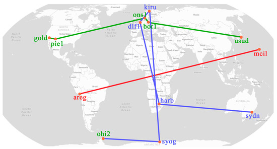 Utilizing the aforementioned stations, ten time transfer links were established. The time transfer link information is shown in Table 2, and the spatial distribution of the ten time transfer links is illustrated in Figure 1.