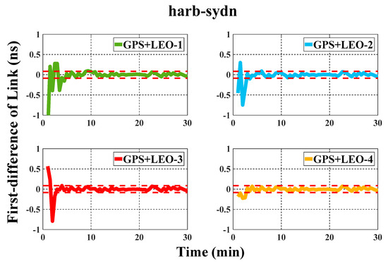 First-order difference diagram of harb-sydn time transfer link clock offset in the four enhancement scenarios.