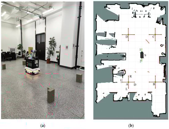Figure 16a, and a map of the environment was constructed using LiDAR, as shown in