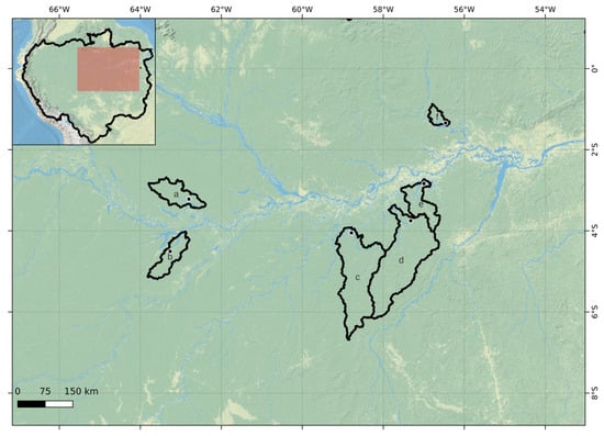 - Householder, J.E.; Wittmann, F.; Schöngart, J.; Piedade, M.T.F.; Junk, W.J.; Latrubesse, E.M.; Quaresma, A.C.; Demarchi, L.O.; Lobo, G.d.S.; de Aguiar, D.P.P.; et al. One Sixth of Amazonian Tree Diversity Is Dependent on River Floodplains. Nat. Ecol. Evol. 2024, 8, 901–911. [Google Scholar] [CrossRef]