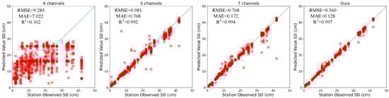 | Data Combination Approach | Channels | RMSE (↓) | MAE (↓) | R2 (↑) |