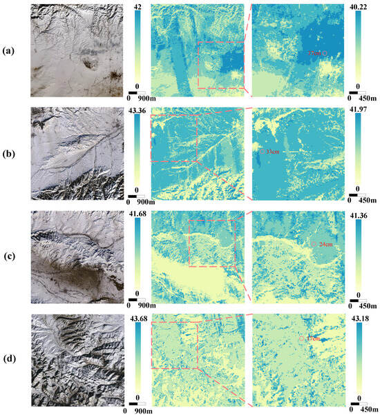 - Mapping snow depth distribution: By these optimal parameters of our model, a snow depth distribution map with a high resolution of 320 m in the study area is shown. It can be predicted that based on our method, high-resolution snow depth maps in any area of interest can be generated.