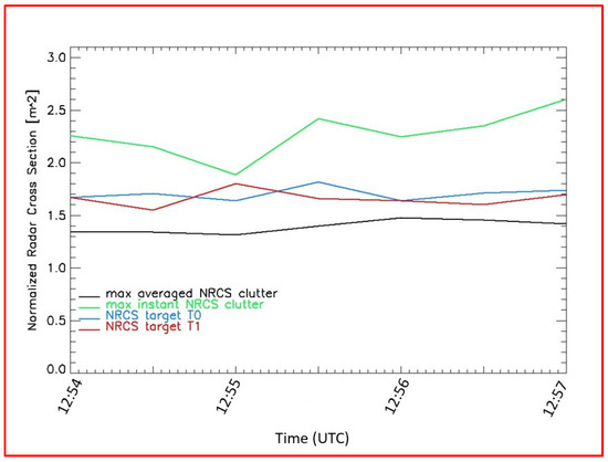 In the second campaign, the time-based radar data analysis procedure illustrated in Section 3.1 made it possible to overcome the limits of the method proposed in [51] so that the targets could be correctly identified even with heavy seas and winds. As can be seen in Figure 10 and Figure 11, the NRCS of the targets averaged over time are greater than NRCS of the clutter averaged over time, thus making the targets detectable by the radar.