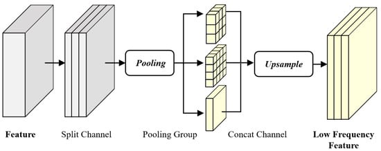 where is the bilinear interpolation upsampling layer and is the adaptive average pooling layer with kernel size . After obtaining the low-pass filtering results for the m feature components, we splice them together in the feature dimension to form our final low-frequency feature .