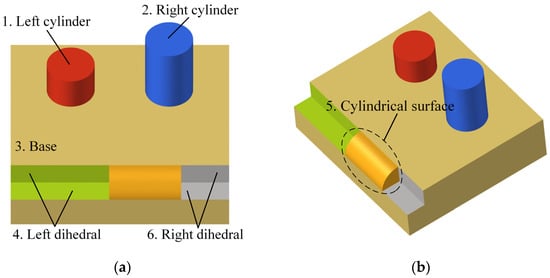 The forward-modeling method for SCs starts from the geometric model of composite targets, decomposing the target and its surface into multiple solid components and utilizing a two-tier partitioning approach to ensure the uniqueness of scattering sources and meet the needs of radar target feature recognition. Each component or structure’s surface is labeled with a secondary partitioning to distinguish them.