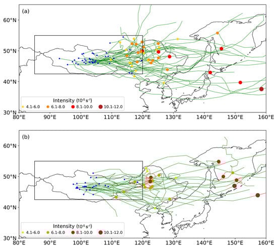 - Takemi, T.; Seino, N. Dust storms and cyclone tracks over the arid regions in east Asia in spring. J. Geophys. Res. Atmos. 2005, 110, D18S11. [Google Scholar] [CrossRef]