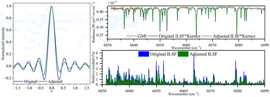 - Wang, J.; Ye, H.; Yi, W.; Chen, Z.; Fang, X.; Du, L. Research on the method of updating instrument line shape function of on-orbit Fourier ultrahigh resolution spectrometer. J. Infrared Millim. Waves 2018, 37, 613. [Google Scholar]
