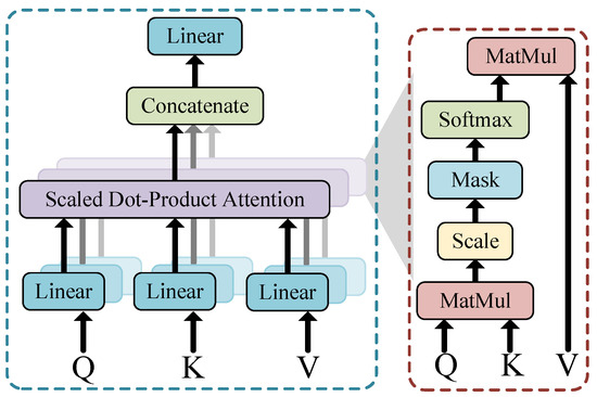 The MHSA block utilizes various sets of weight matrices to map the query , key , and value , calculating the multi-head attention values using the same operational procedure. Following this, the outputs from each attention head are concatenated. This procedure is represented by the equation below: