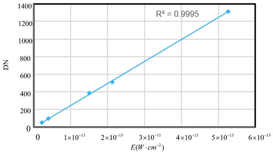 In order to further validate the effectiveness of the proposed method in practical applications, this study conducted calibration experiments on five selected stars (as indicated in Table 8) using an on-orbit camera, where these stars demonstrated an extrapolation accuracy of less than 1% within the camera’s spectral band (8–12 m). Figure 9 illustrates the calibration outcomes, where the vertical axis represents the camera’s digital number (DN) response and the horizontal axis denotes the stellar radiative flux (E). It was observed that the calibration curve achieved a fitting accuracy (R²) of 0.9995, demonstrating a high level of precision.