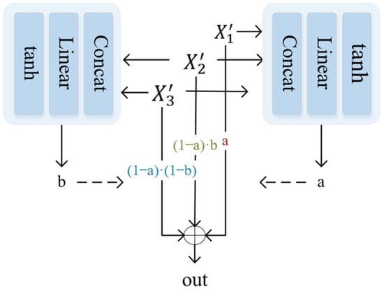 To effectively utilize information, a DoubleGate mechanism is employed to integrate the information from the three branches. The specific calculation process is illustrated in Figure 4.