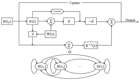 AFRNN model (15) is a dynamic system constructed based on explicit formulas. Starting from any initial state, the model evolves over time, gradually approaching the theoretical solution by continuously updating parameters. This process relies on the current time-varying coefficient matrix and its derivative information over a predetermined time span and is implemented through specific algebraic operations. Figure 2 shows the framework structure of how the AFRNN model (15) updates parameters in a unified manner.