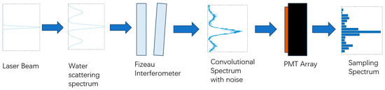 According to Yu, the temperature and salinity of water can be obtained by analyzing the Brillouin linewidth and frequency shift [26]. Therefore, spectral acquisition should be completed first for environmental parameter detection. In this study, a Fizeau interferometer in conjunction with a PMT array was employed to capture the scattered echo spectrum; the acquisition process is illustrated in Figure 2.