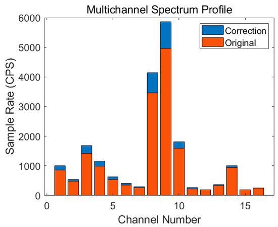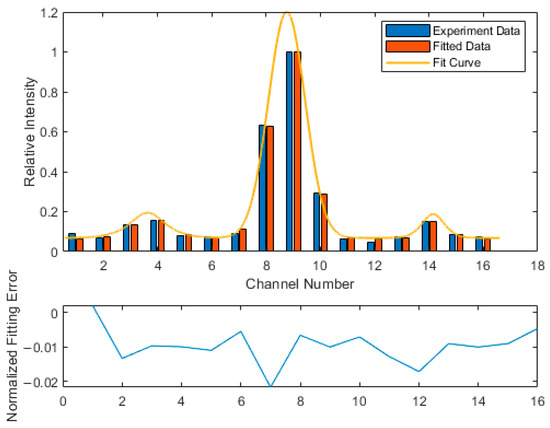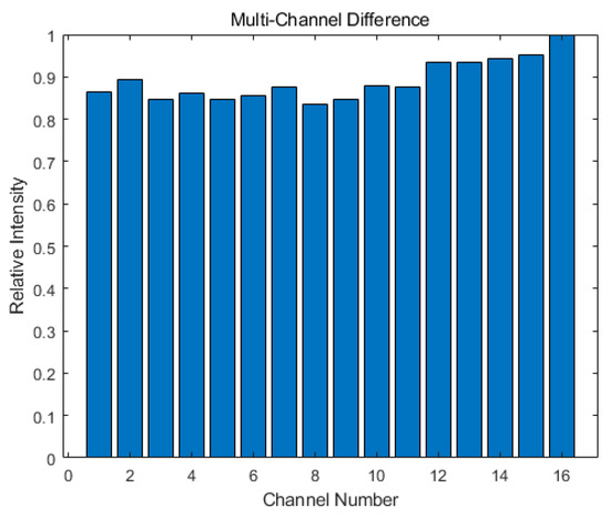 The maximum value of each channel and its ratio to the maximum value of the 16th channel, as shown in Figure 4, were used as the special correction coefficient, . The original data for each channel, , were then divided by the correction coefficient to obtain signal after correction, as follows: