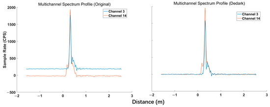 To correct for dark noise, a reference section of dark noise was captured at the beginning of each of the 16 channels where no laser signal was present. The elimination of dark noise from the overall signal of each channel results in a signal without dark noise. The results obtained after removing baseline noise from the two channels are shown in Figure 9.