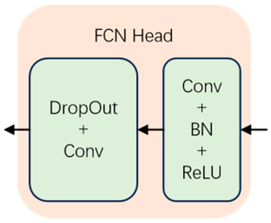 The FCN Head demonstrates commendable performance in small target detection tasks, prompting its integration into the network’s terminus to yield detection outcomes. As depicted in Figure 9, the FCN Head comprises a 3 × 3 convolutional layer followed by batch normalization and activation layers, along with a dropout layer and a 1 × 1 convolutional layer, ultimately yielding segmented result maps.