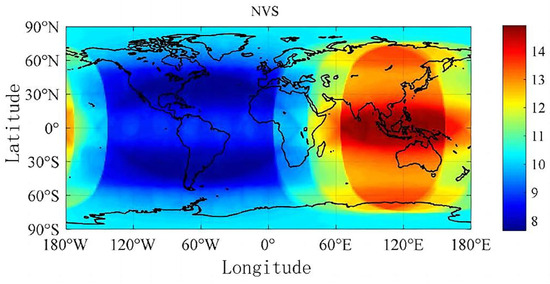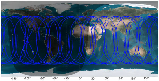 The GNSS constellation simulated in this paper is the BDS constellation, including 3 GEO satellites, 3 IGSO satellites, and 24 MEO satellites. The simulated low Earth orbit constellation consists of 216 satellites, including 72 satellites in near-polar orbits and 144 satellites in inclined orbits. In order to reduce the calculation amount, the simulation time is set to 7 days, from 9 October 2021 12:00:00 to 16 October 2021 13:00:00, with a step of 1 min. The parameters of the BDS constellation and LEO constellation are shown in Table 2.