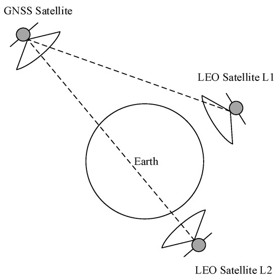 LEO navigation enhancement functions mainly include navigation signal transmission and space-based monitoring (SBM) [4,5,6]. Navigation signal transmission refers to LEO satellite transmission navigation enhancement signals to ground users to achieve information enhancement or signal enhancement of GNSS signals; SBM refers to configuring high-precision GNSS monitoring receivers on LEO satellites to receive downlink signals of GNSSs and analyze the quality of these signals.