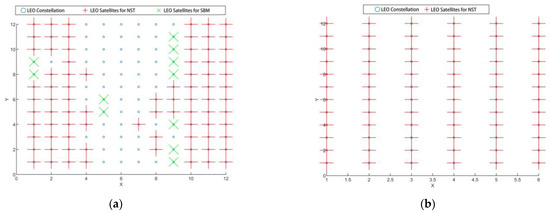 Constellation distribution map of the resource allocation scheme by NRAA-DP. (a) Inclined orbit satellites. (b) Near-polar orbit.