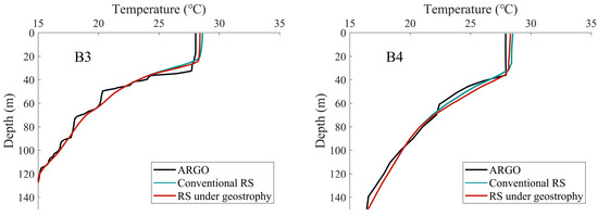 To further validate the influence of radiation stress, induced by typhoon conditions, on vertical ocean temperature profiles, Argo floats were employed to contrast the vertical temperature simulations derived from both conventional RS and geostrophic effect RS schemes.