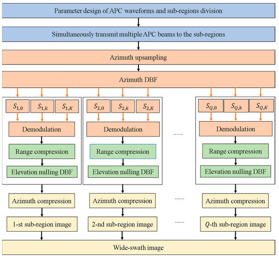 This article proposes a multi-beam SAR two-dimensional ambiguity suppression scheme based on APC. In order to further describe the proposed scheme, Figure 5 illustrates a flowchart of the ambiguity suppression scheme, and the specific steps are described below.