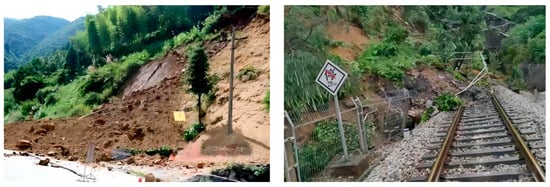 Hunan Province accounted for 65% of national landslide occurrences with 2561 events. Landslides can also trigger secondary disasters like debris flows and floods. Table 1 presents statistics on landslide disasters in Xupu County townships. With distinct seasonal rainfall patterns, concentrated early summer rainfall, significant terrain relief, and numerous fault structures, Xupu County has multiple factors triggering landslides, making it suitable as the study area for this research [,,].