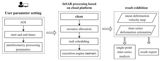 Main workflow of InSAR surface deformation analysis tool based on the cloud platform.
