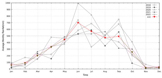 The monthly average rainfall of North Sikkim from 2018 to 2022 and five-year average rainfall.