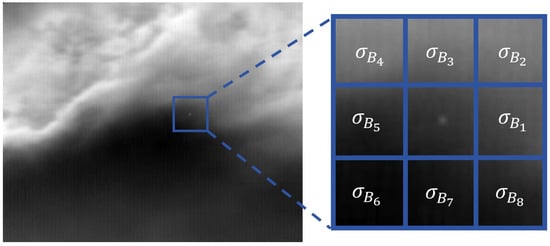 Z-score normalization is further applied to subregions to more accurately describe the complexity of the background. This comes from the fact that if the variance of the background around the target localization is calculated directly, it does not correctly reflect the fluctuations of the background in some specific cases; even the normalization step leads to the missing of some targets. As shown in Figure 5, the variance value is larger when the target is at a boundary position. However, the subregions are homogeneous, indicating that the model is inaccurate.