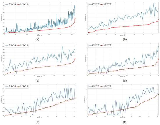 The PSCR and MSCR of the six tested sequences are presented in Table 2. (a–f) correspond to Seq1–Seq6, respectively.