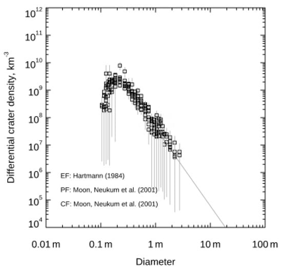 Size–frequency distribution of the impact craters up to 2 m in diameter.